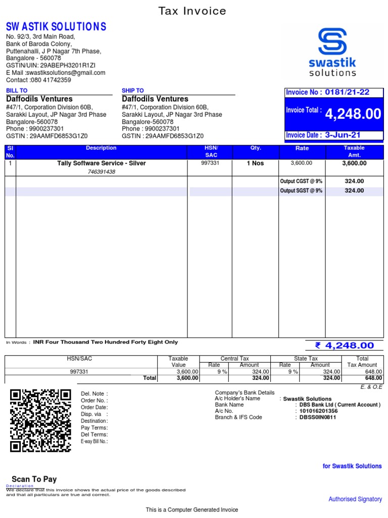 This is the invoice i received from Wordlink. Before and after 13% TCS ...