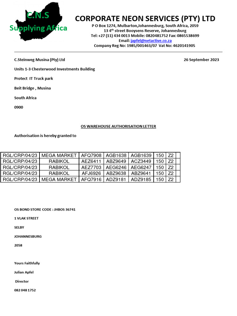 City of Windhoek Tax Invoice for Water Services Provided to Murungweni ...
