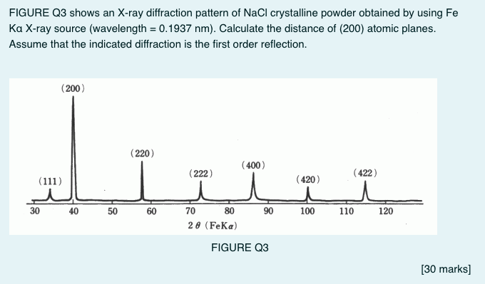 Solved FIGURE Q3 shows an X-ray diffraction pattern of NaCl | Chegg.com