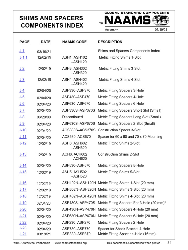 NAAMS Shims and Spacers Index | PDF | Engineering Tolerance ...