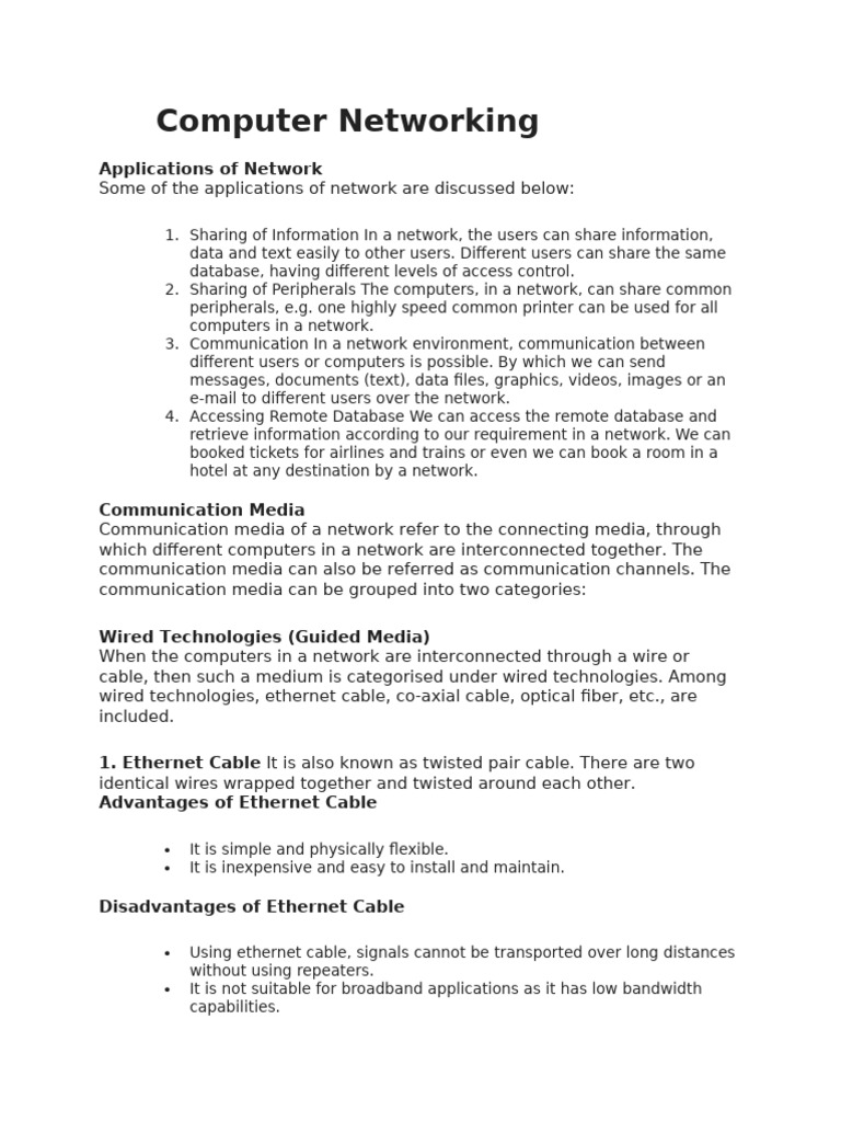 Part 1 - Computer Networks Class 12 Notes | PDF