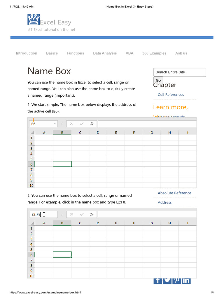 Name Box in Excel (In Easy Steps) | PDF | Microsoft Excel | Software