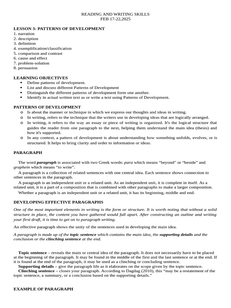 Patterns of development in writing Part 1| Reading and Writing-SHS ...
