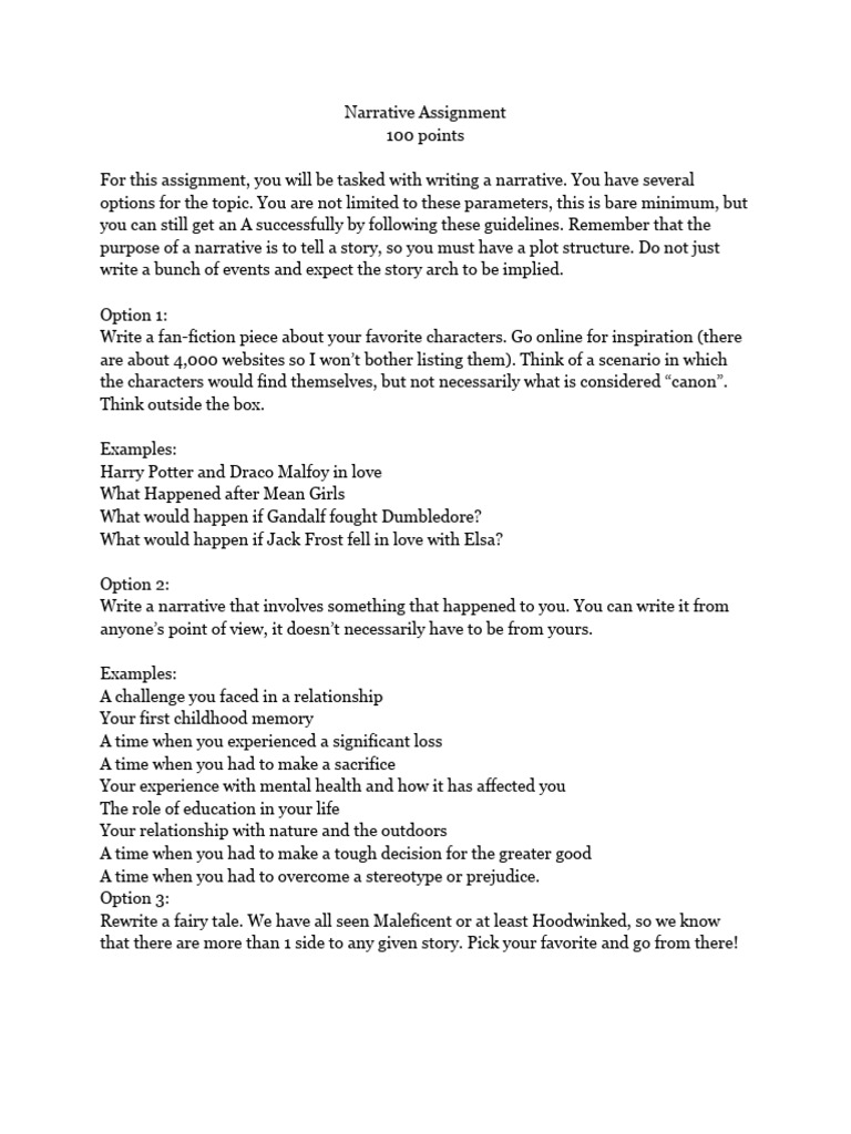 Narrative essay assignment sheet | PDF
