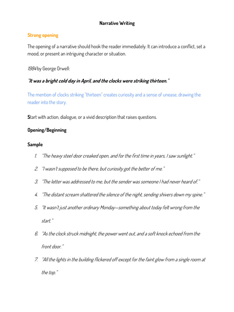 Opening Lines For Narrative Writing at Neomi Ingram blog
