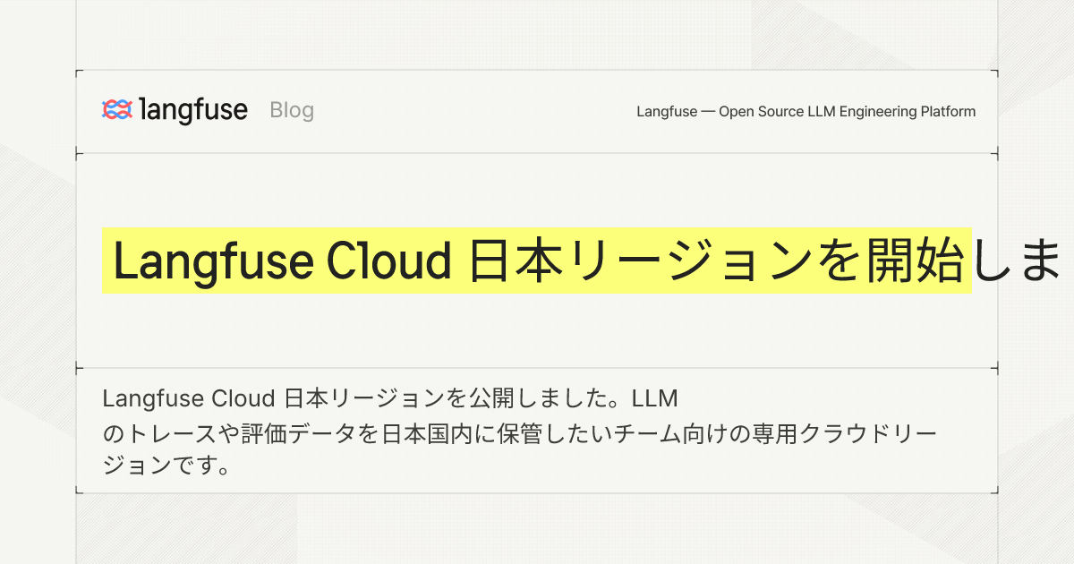 Langfuse Cloud 日本リージョンを開始しました - Langfuse