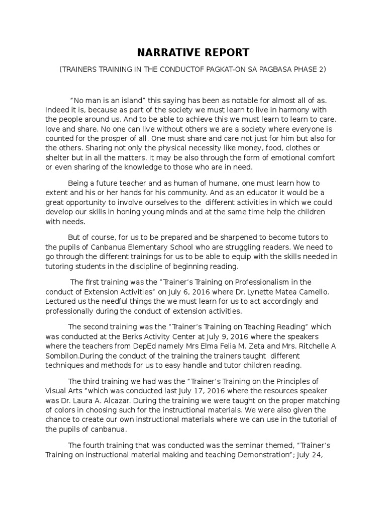 Example Of Narrative Report In School