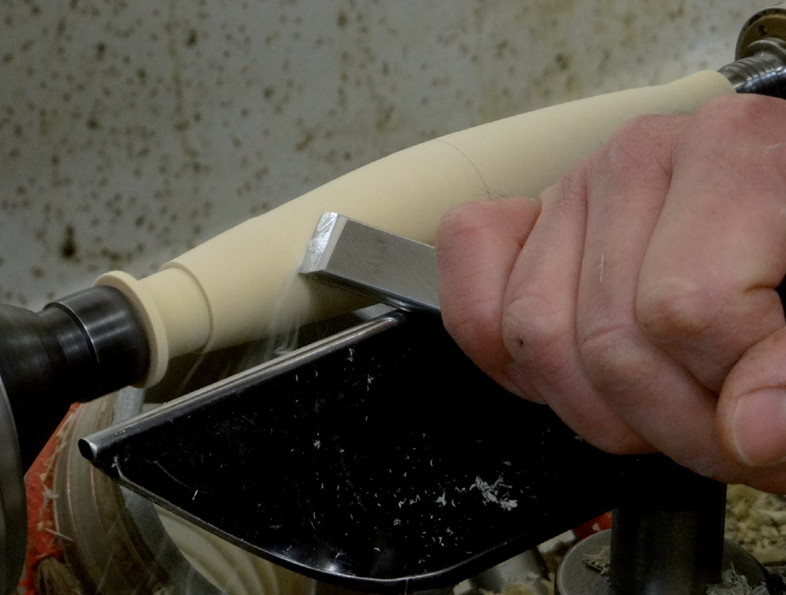 Craftsman using a sharp chisel to refine and smooth the curved surface ...