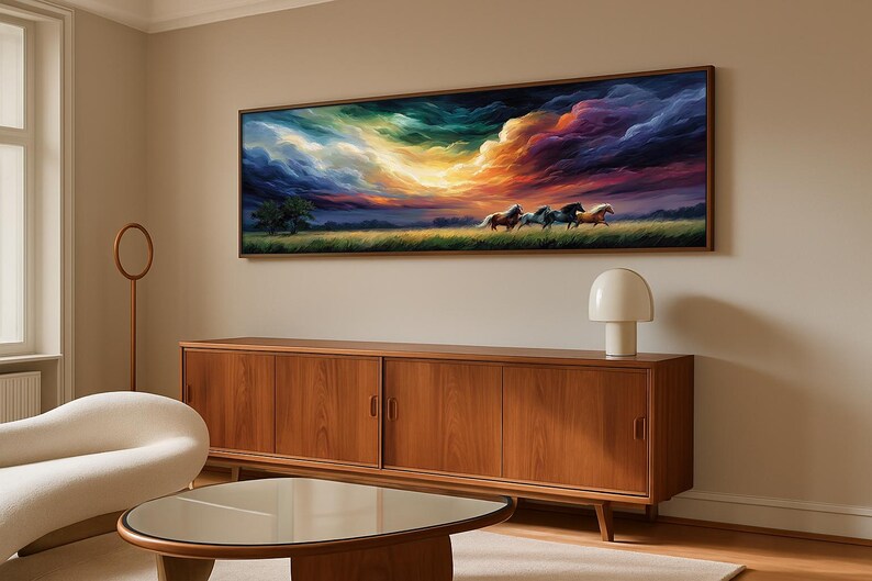 Running Horse Long Narrow Wall Art : Wild Nature Landscape Painting ...