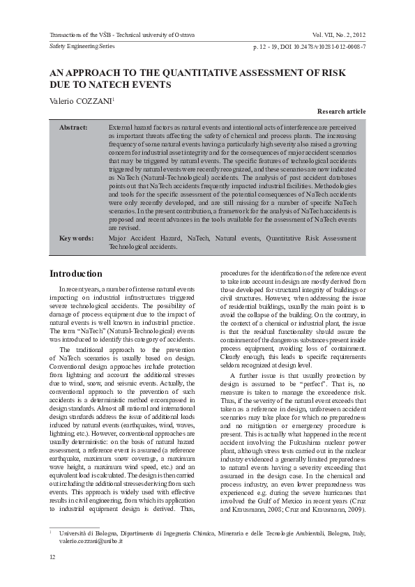 (PDF) An Approach to the Quantitative Assessment of Risk Due to Natech ...