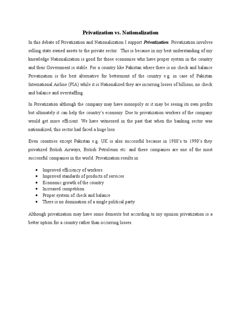 Nationalization over Privatization - PHDessay.com