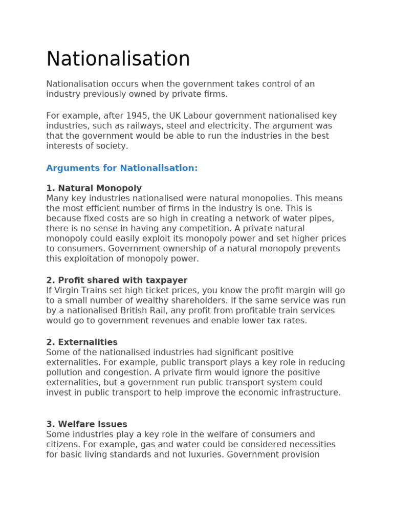 Arguments for nationalisation - Economics Help