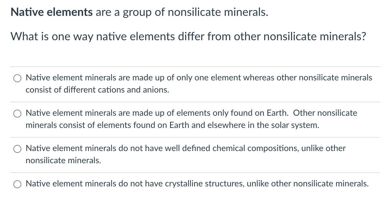 Solved Native elements are a group of nonsilicate minerals. | Chegg.com