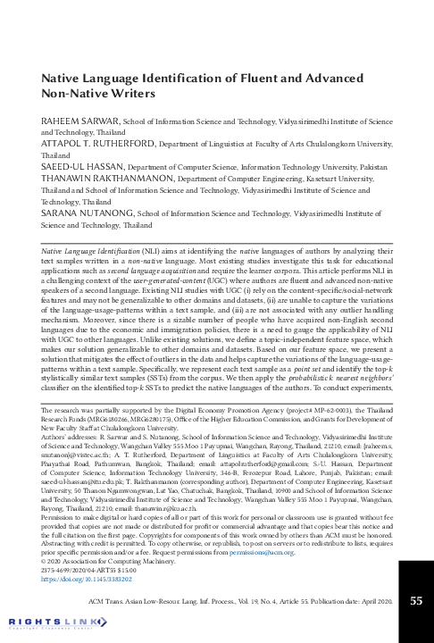 (PDF) Native Language Identification of Fluent and Advanced Non-Native ...