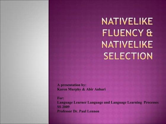 Nativelike Fluency and Nativelike Selection | PDF