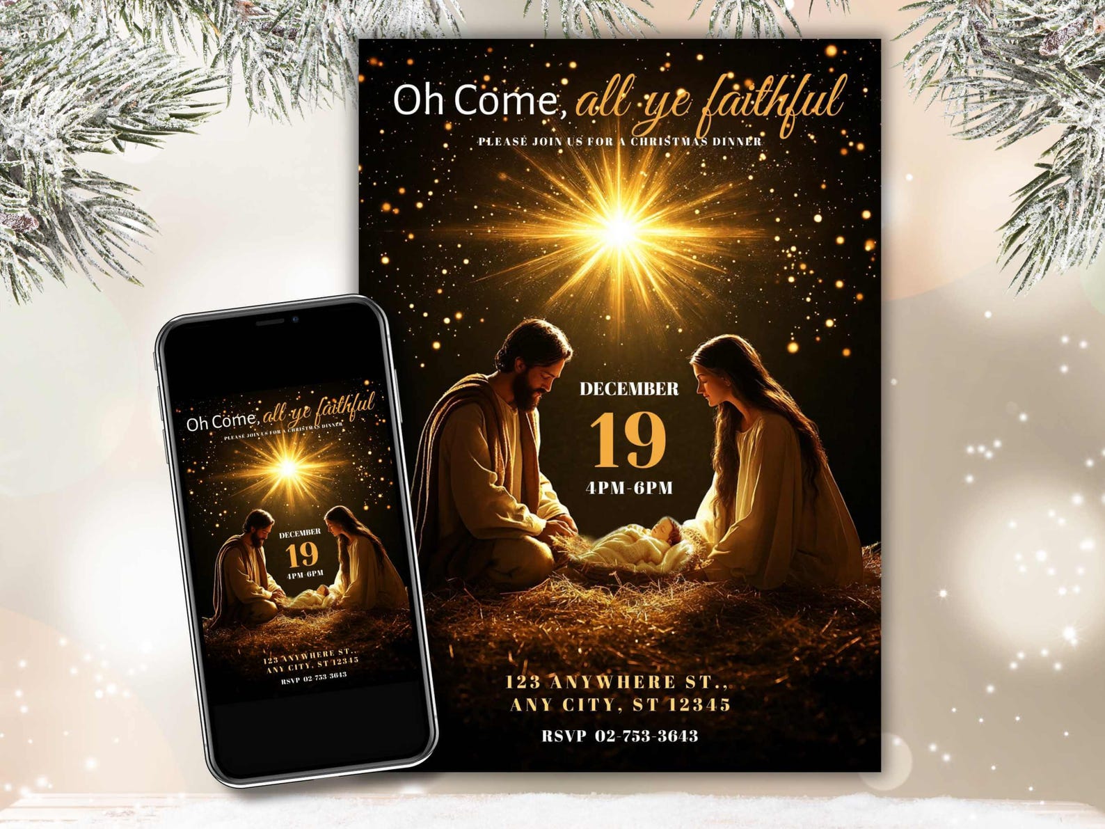 Christian Christmas Nativity Invitation, Religious Invite, Editable ...