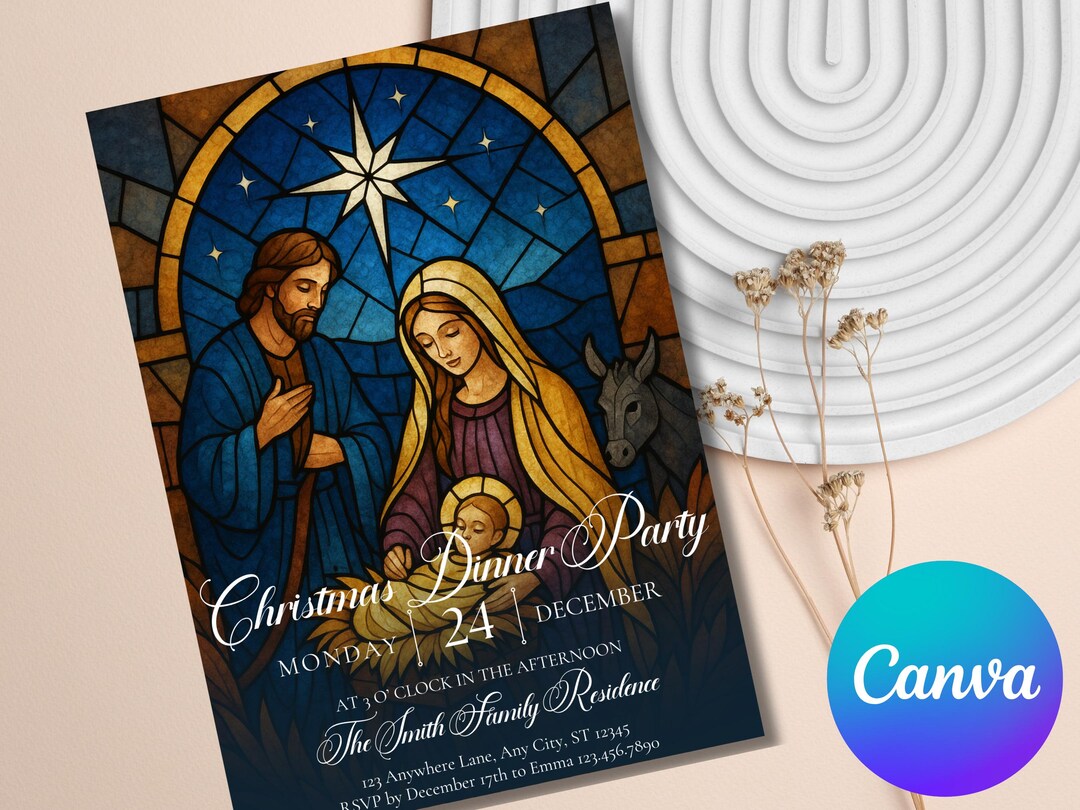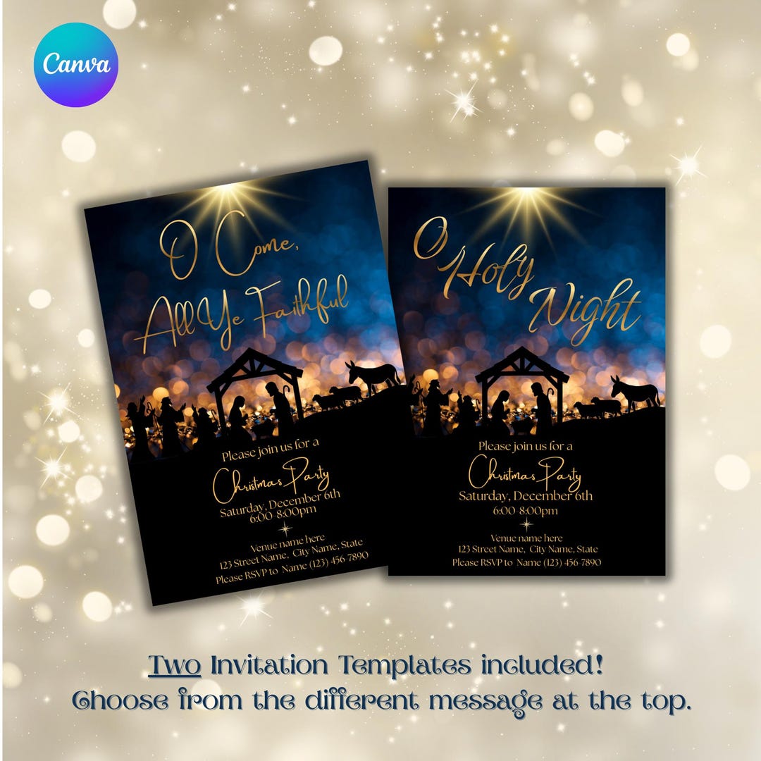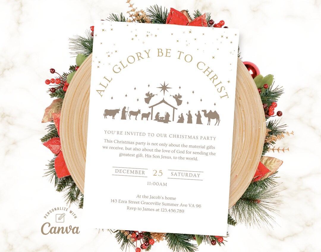 Editable Christmas Canva Template, Nativity Invitation, Christian Party ...