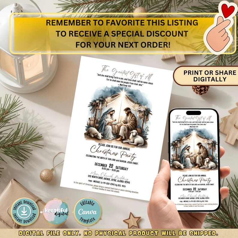 Nativity Invitation Digital, Christmas Nativity Invitation, Nativity ...