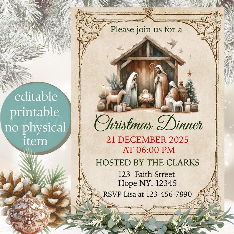Editable Nativity Invitation, Nativity Invitation, Religious Invitation ...