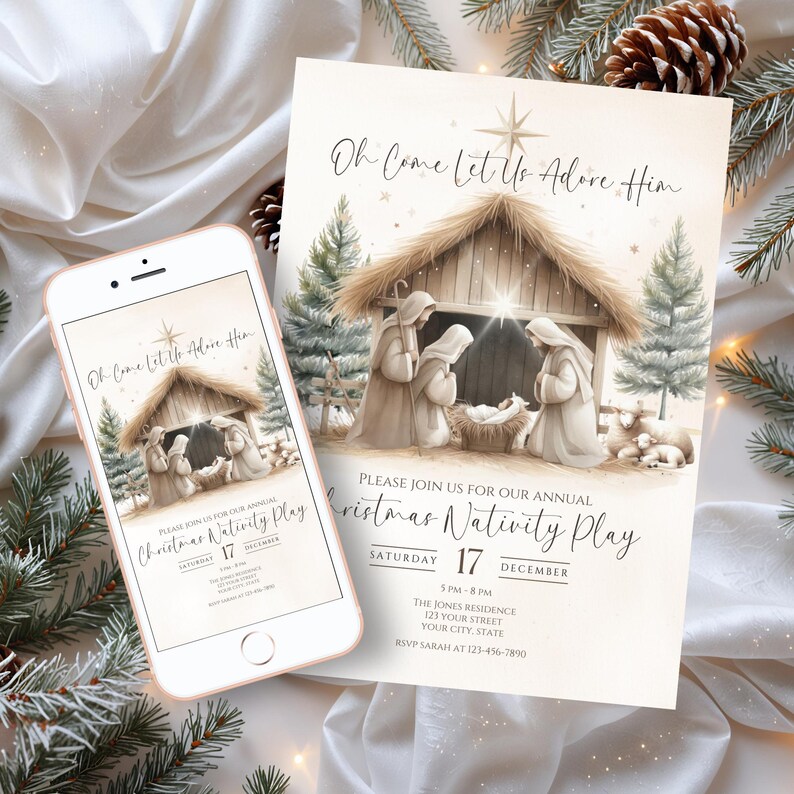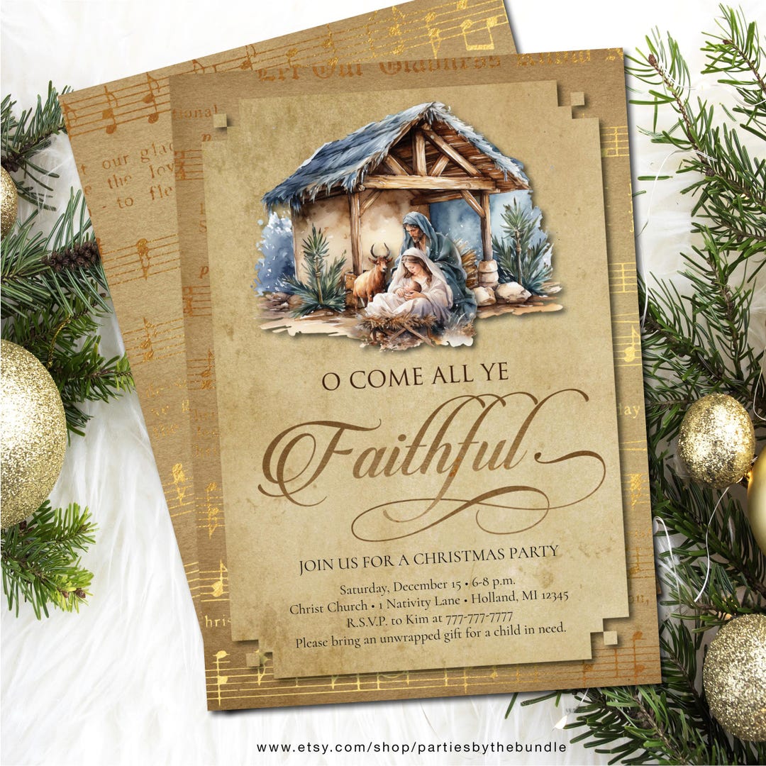 Christmas Nativity Invitation, O Come All Ye Faithful Invite, Religiou ...