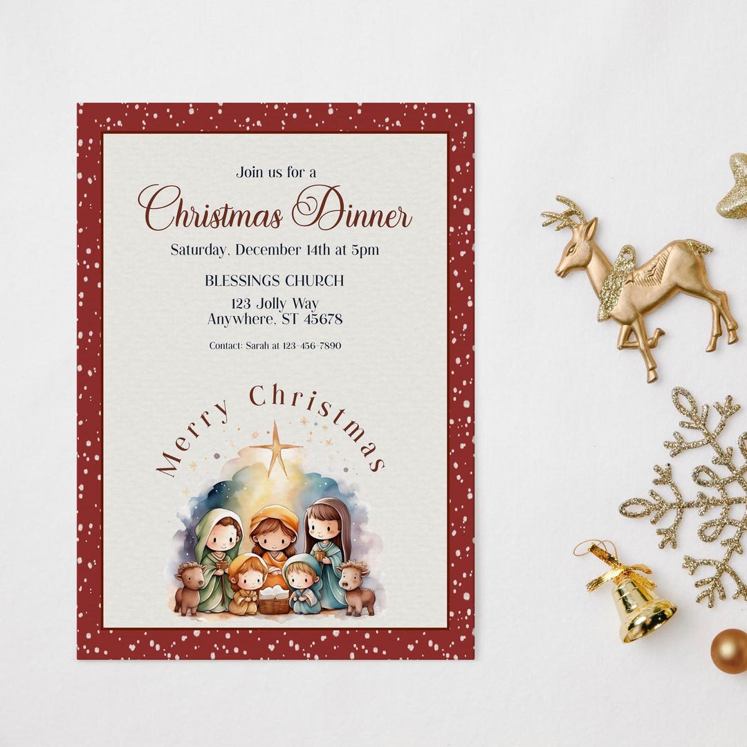 Editable Nativity Christmas Invitation, Church Christmas Dinner ...