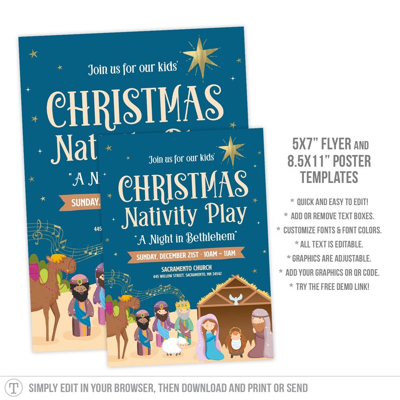 Nativity Christmas Play Invitation | Canva Template | Editable for Any ...