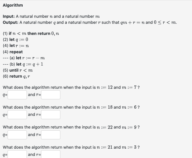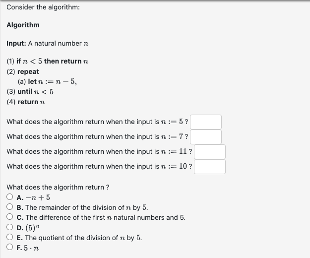 Solved Algorithm Input: A natural number n and a natural | Chegg.com
