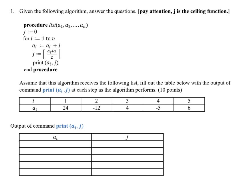 Q1) Answer the questions for the following Algorithm. | Chegg.com