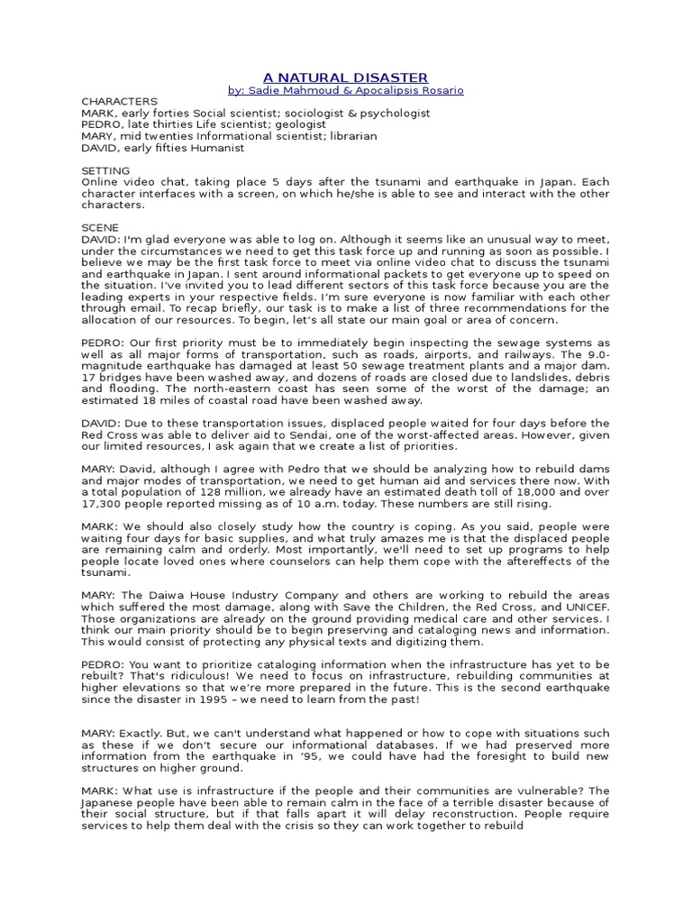 A Natural Disaster Script | PDF | Fukushima Daiichi Nuclear Power Plant ...