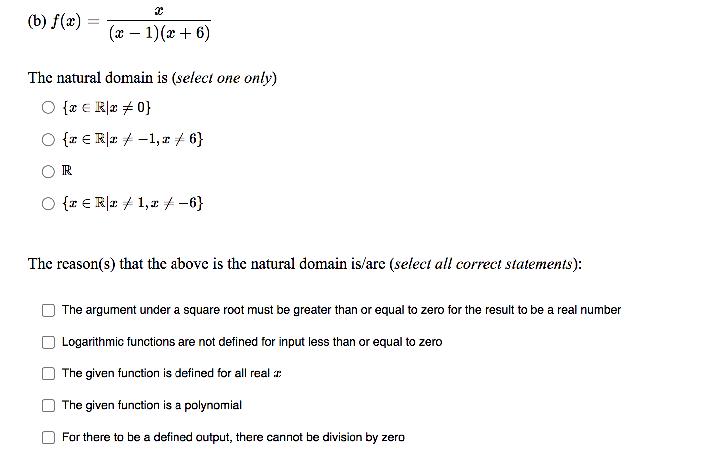 Solved Which of the following represents the natural domain | Chegg.com
