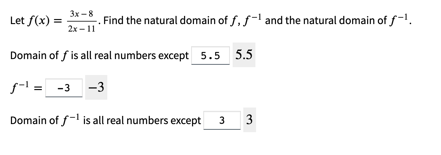 Solved Let f(x)=2x−113x−8. Find the natural domain of f,f−1 | Chegg.com