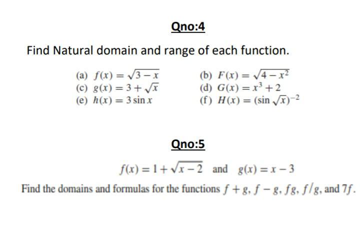 Solved Find the natural domain of the following functions. | Chegg.com