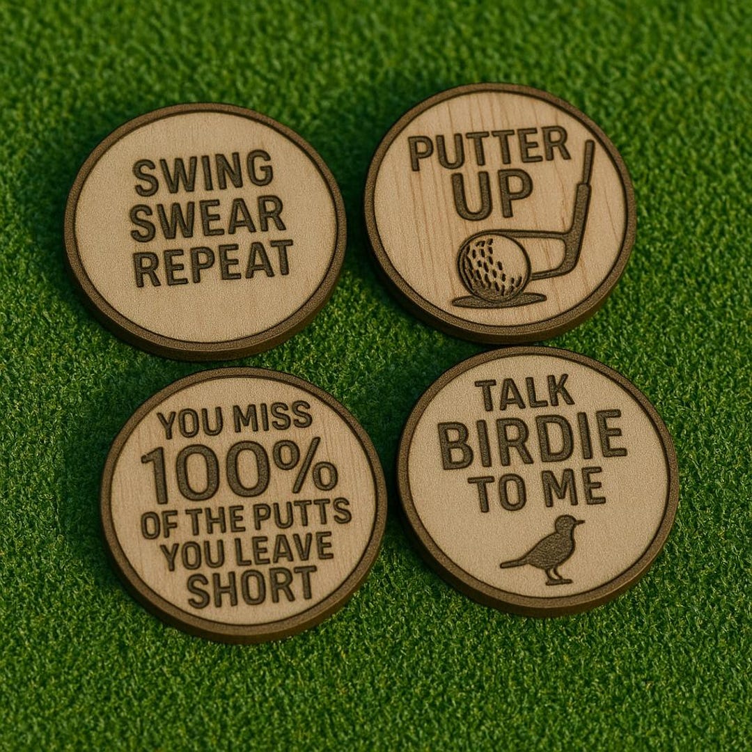Golf Ball Marker Set – Natural Wood 4-pack – Funny Golf Gift | Includes ...
