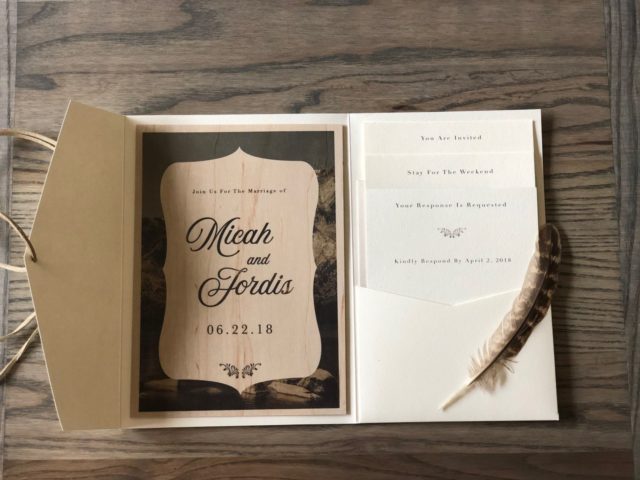 Nature-inspired rustic woodgrain wedding invitations featuring earth ...