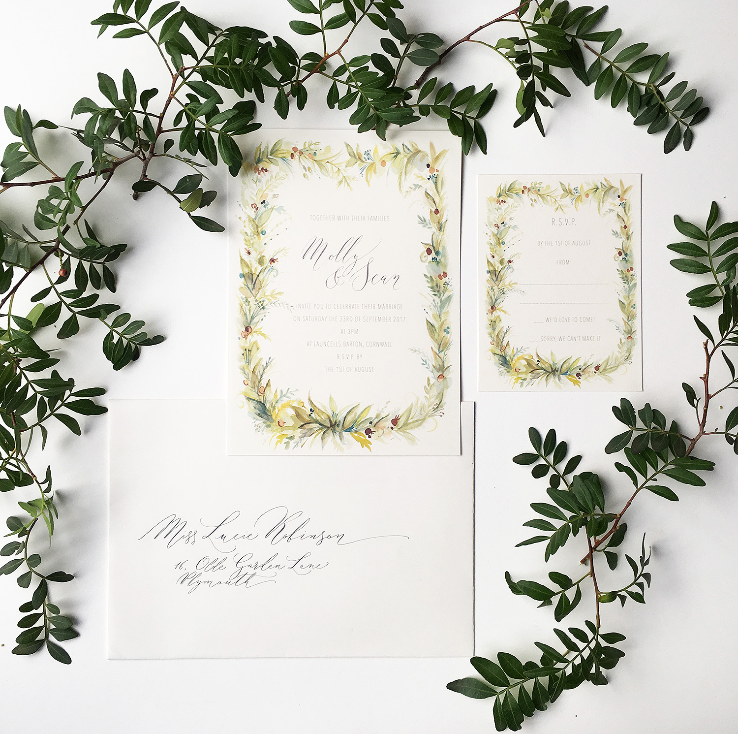 Classy and Natural Invitation Suite with Accents of Green | Natural ...