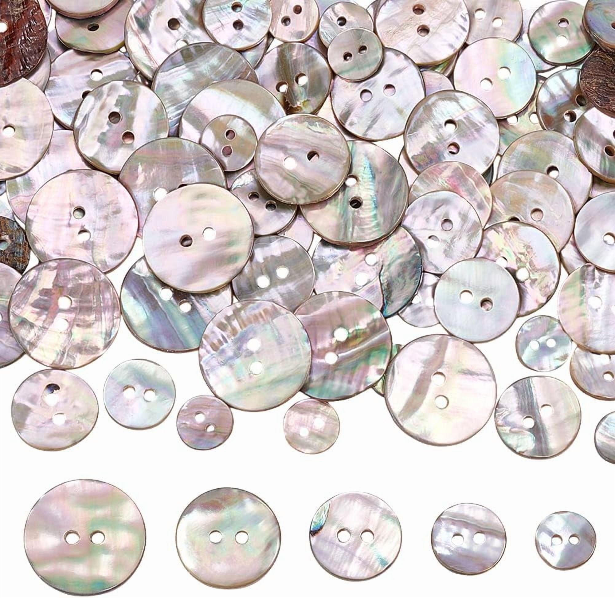 100pcs 5 Sizes Round Shell Buttons 10/12/15/18/20mm Natural Shell ...