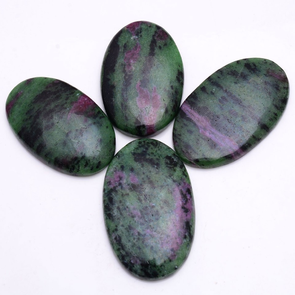 4 Pcs Natural Ruby Zoisite 45mm-50mm Untreated Oval Cabochon Loose ...