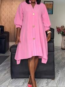 Casual Daily Elegant Solid Color Flat Button V Neck Midi Dress | Mode ...