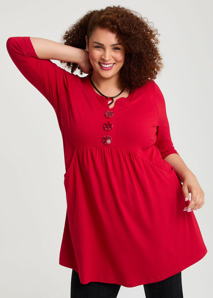 Shop Plus Size Button Me Up Wiseguy Natural Tunic, Red | Taking Shape UK