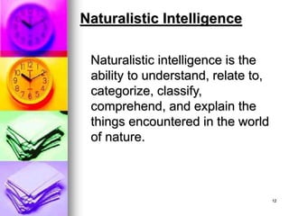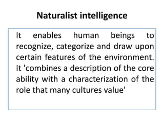 SOLUTION: Naturalistic intelligence , its characteristics and examples ...