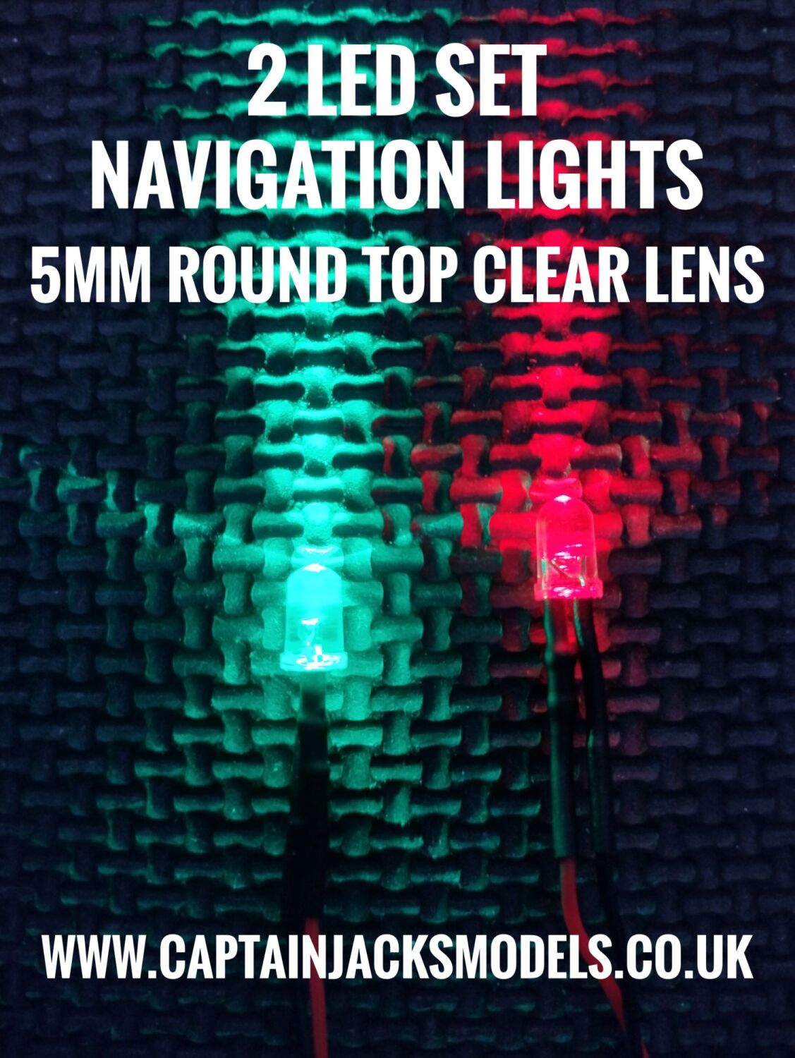 2 Prewired LED Pack Of Navigation Light LEDs 5mm ROUND TOP CLEAR LENS ...