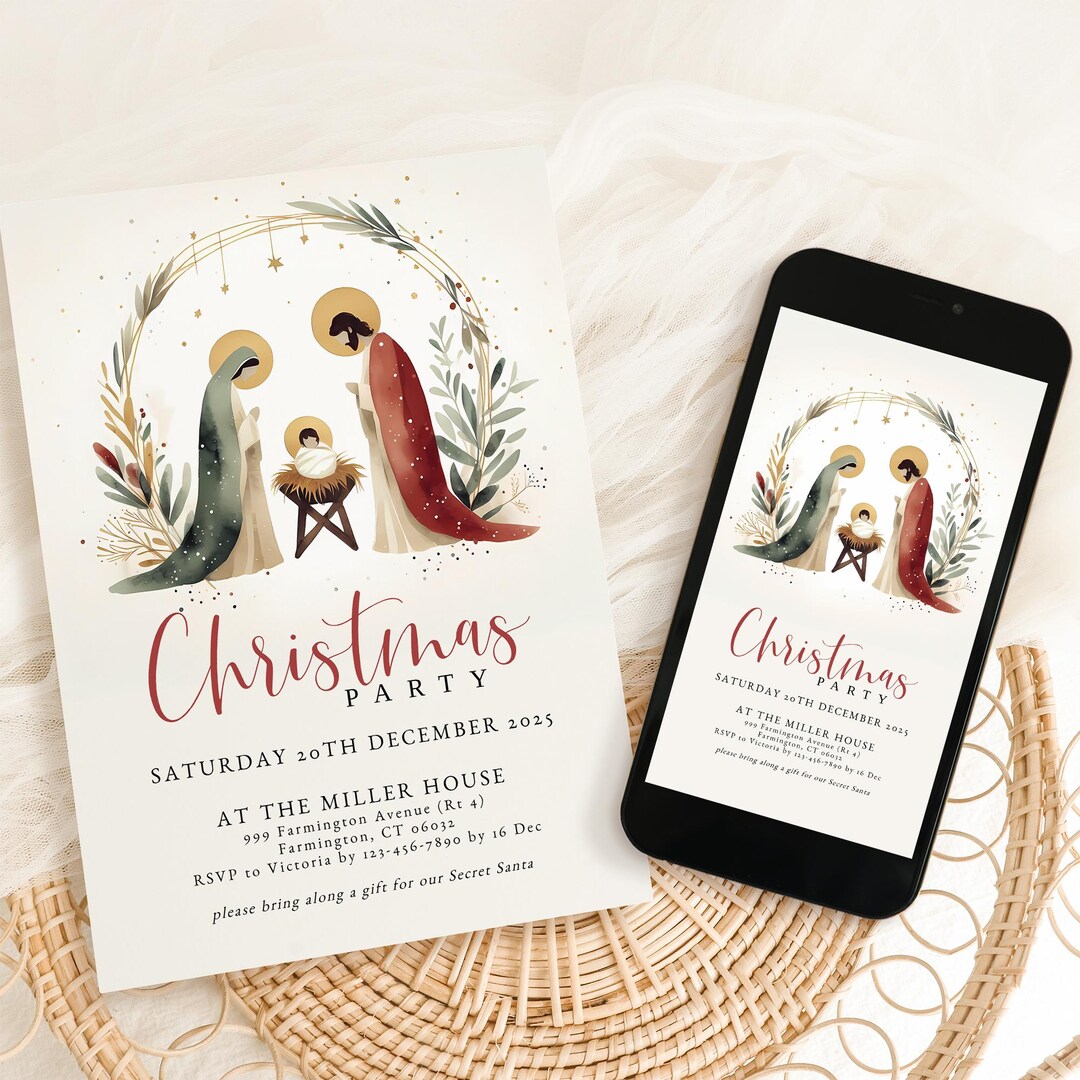Nativity Party Invitation | Editable Birth of Jesus Christmas Party ...