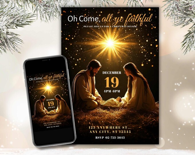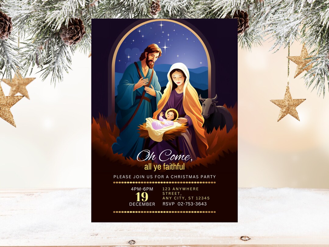 Christmas Nativity Invitation, O Come All Ye Faithful Invite, Religiou ...
