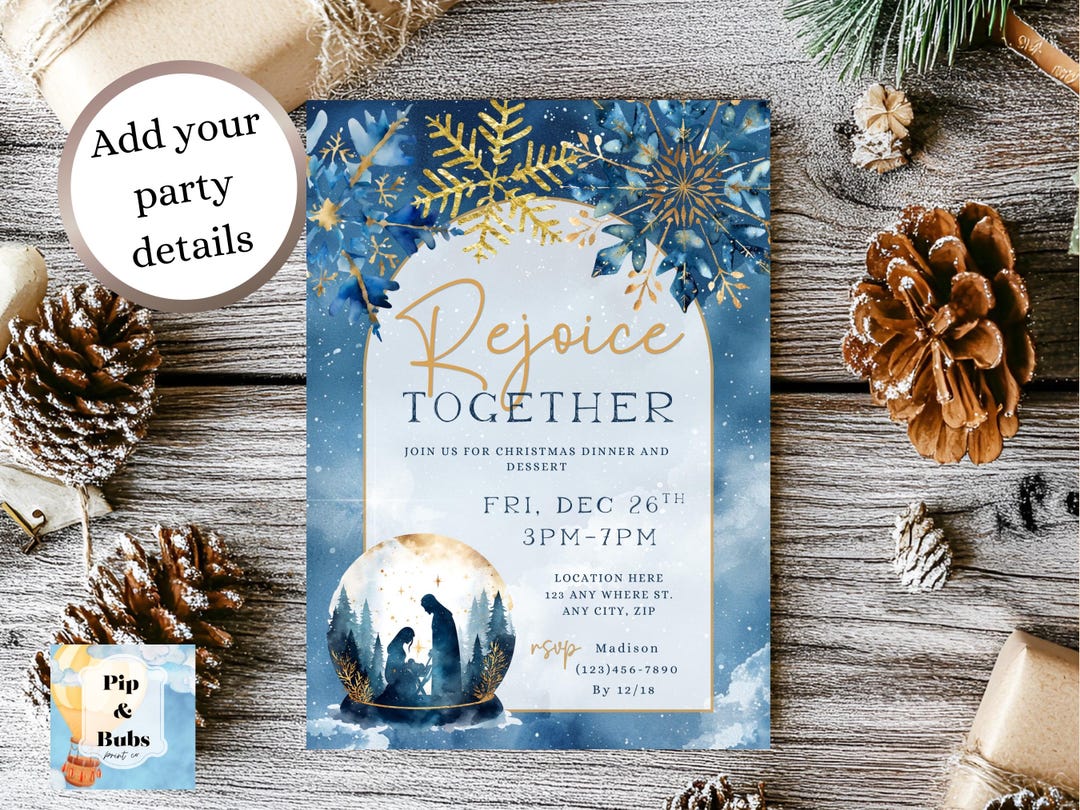 Nativity Christmas Dinner Invitation: Elegant Church Party (edit in ...