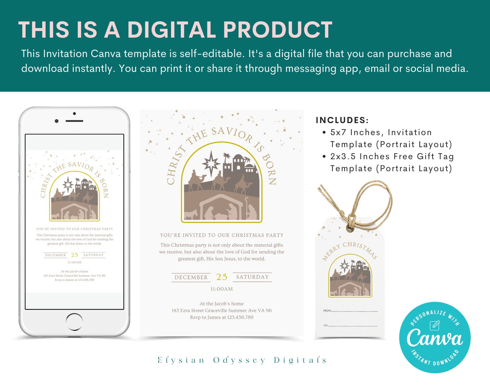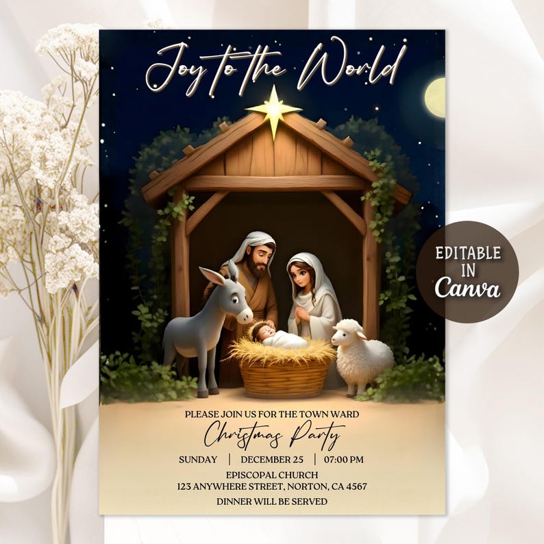 Editable Christmas Canva Template, Nativity Invitation, Christian Party ...