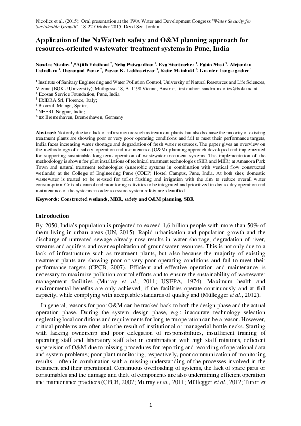 (PDF) Application of the NaWaTech Safety and O&M Planning Approach Re ...