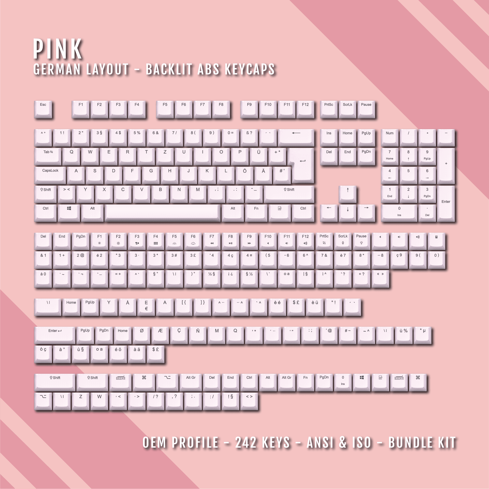 Light Pink German (ISO-DE) Backlit ABS Keycaps for Windows & Mac ...