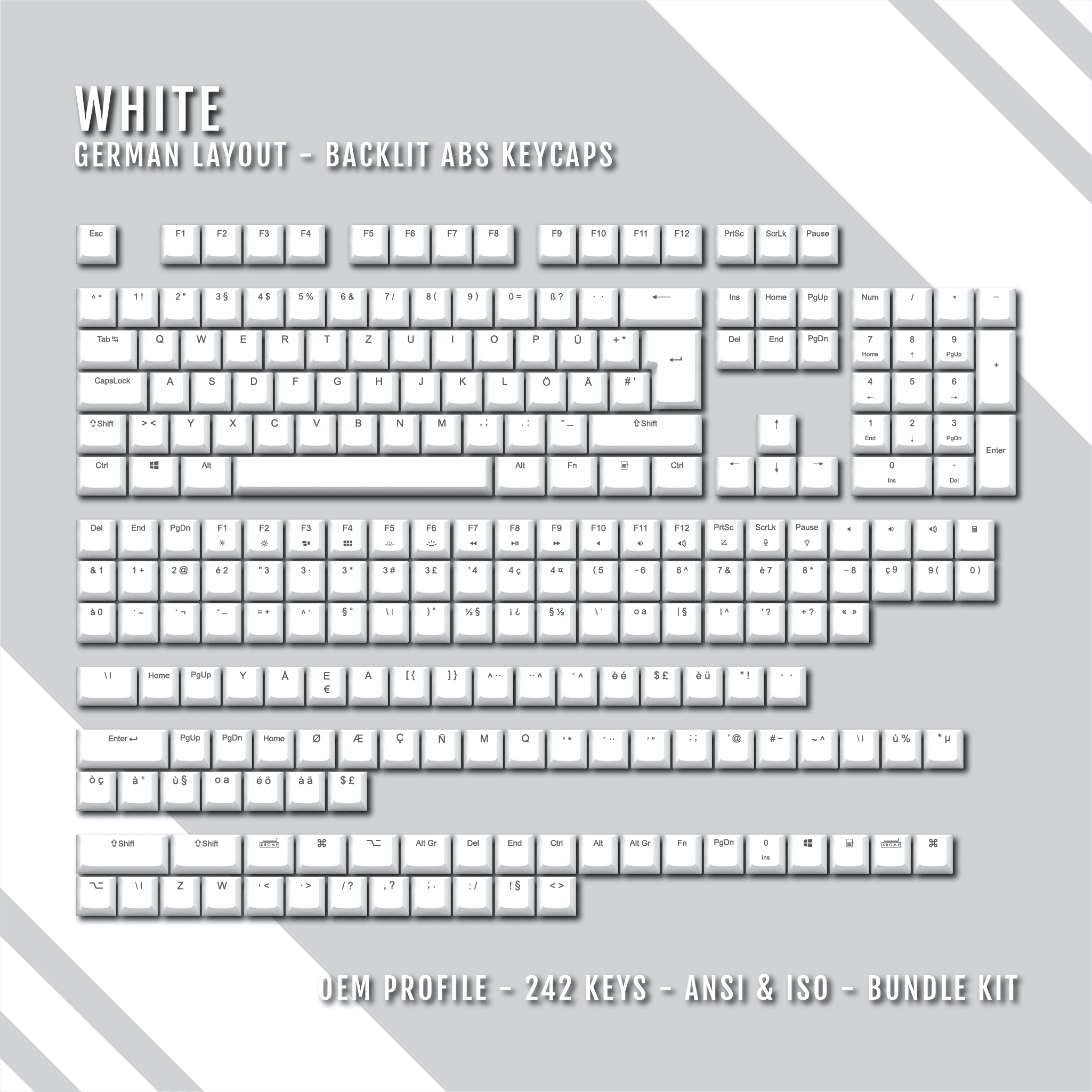 Light Grey Backlit German Keycaps - ISO-DE - Windows & Mac – kromekeycaps