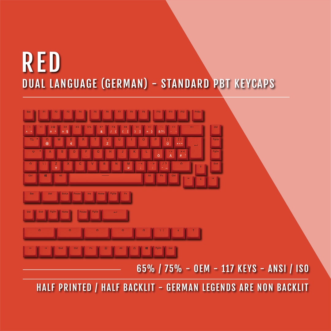 Red German (ISO-DE) Dual Language PBT Keycaps - 65/75% – Krome Keycaps LTD