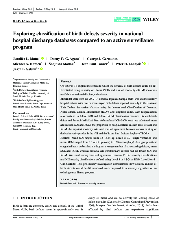 (PDF) Exploring classification of birth defects severity in national ...